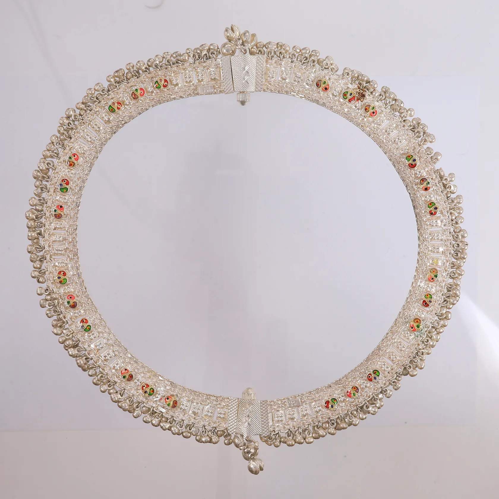 Halssmykke med flerfarget emalje, lengde 56cm, bredde 24- 38mm, 830S, bruttovekt 147,8g Kontakt Lånekontoret for frakt.