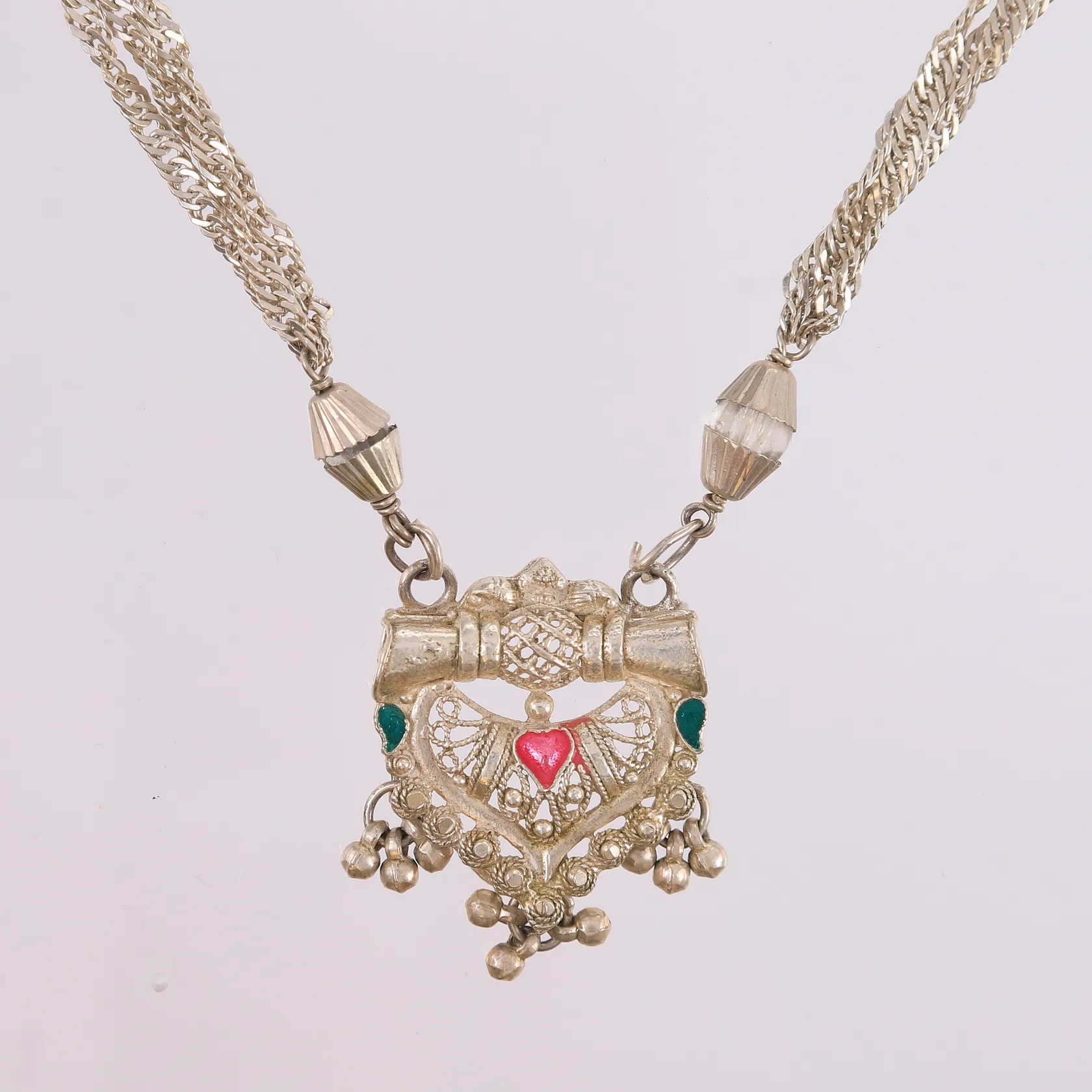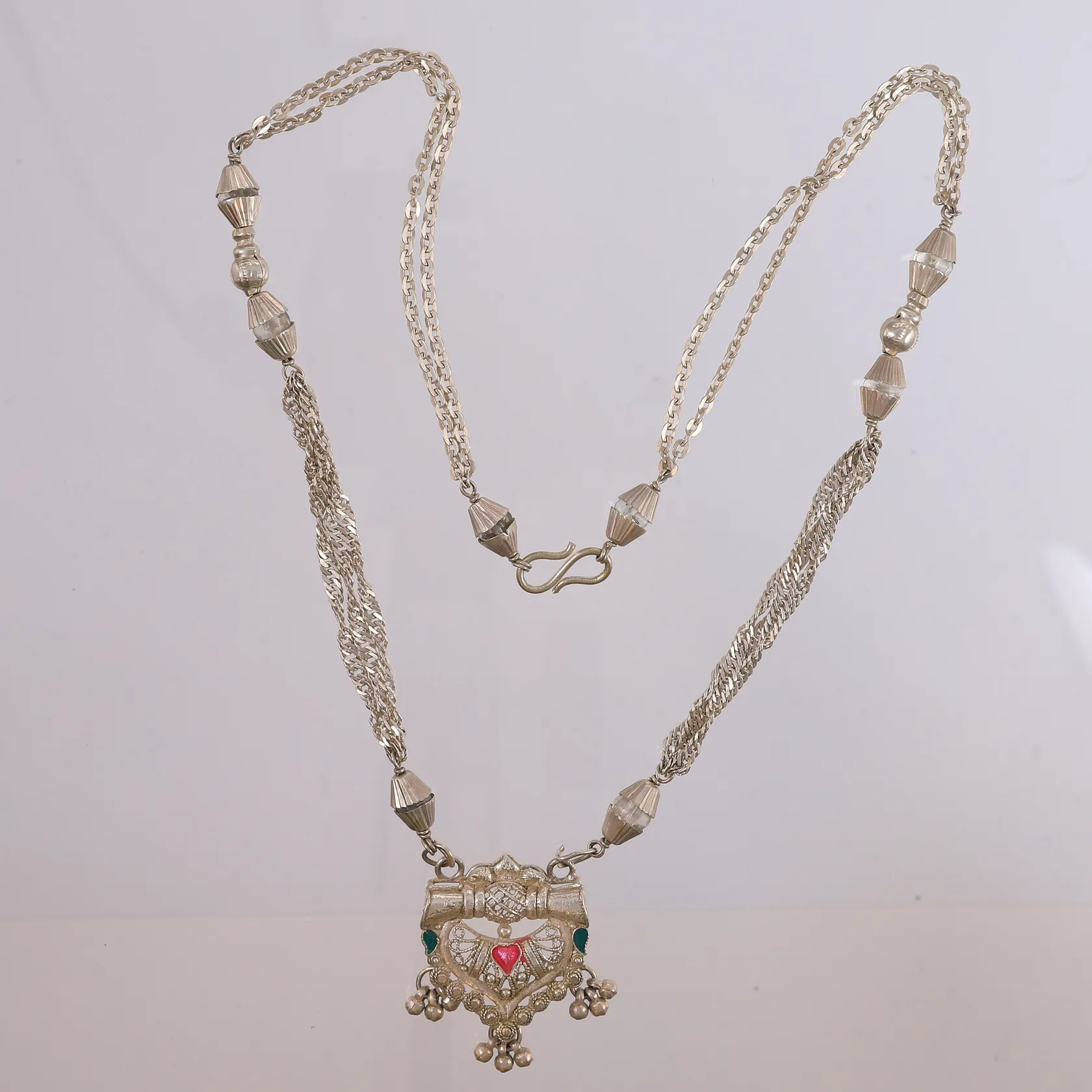 Halssmykke med flerfarget emalje, lengde 58cm, bredde 2,7- 40mm, 830S, bruttovekt 31,9g Kontakt Lånekontoret for frakt.