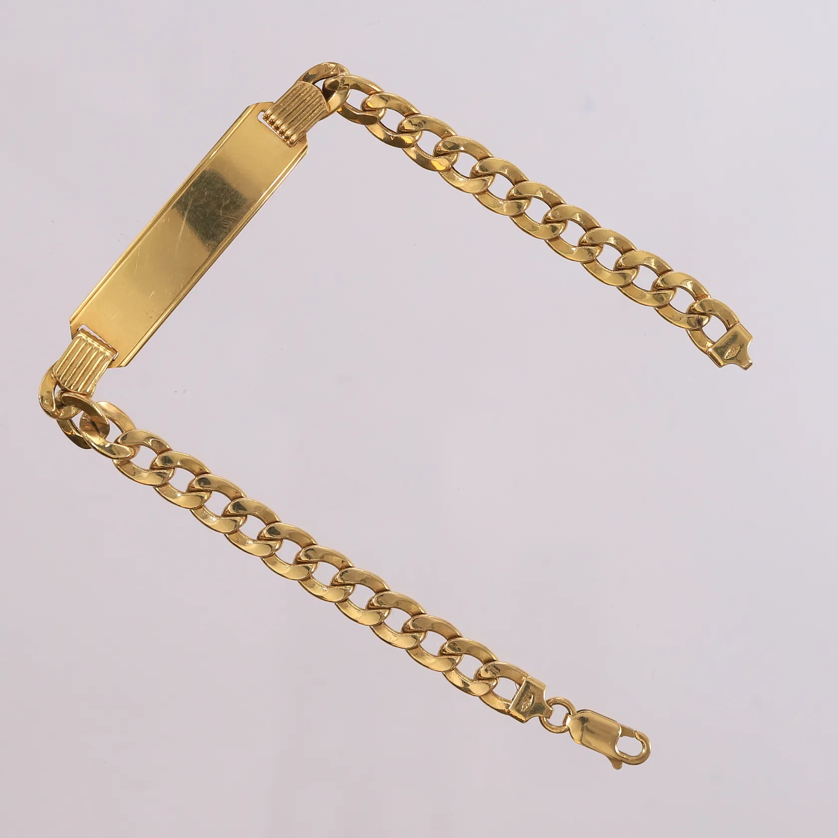 Armbånd Panser med ugravert plate, hult, lengde 20cm, bredde 6,3mm, 18K Vekt: 11,7 g. Kontakt Lånekontoret for frakt.