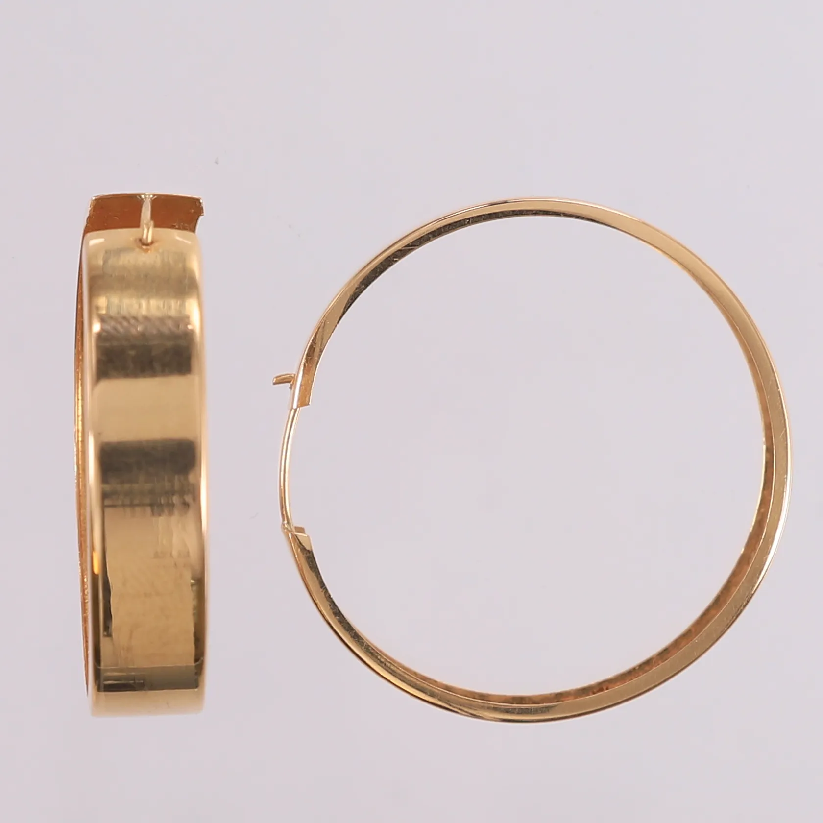 Ett par øreringer, ø35mm, bredde 7,2mm, 14K Vekt: 4,5 g. Kontakt Lånekontoret for frakt.