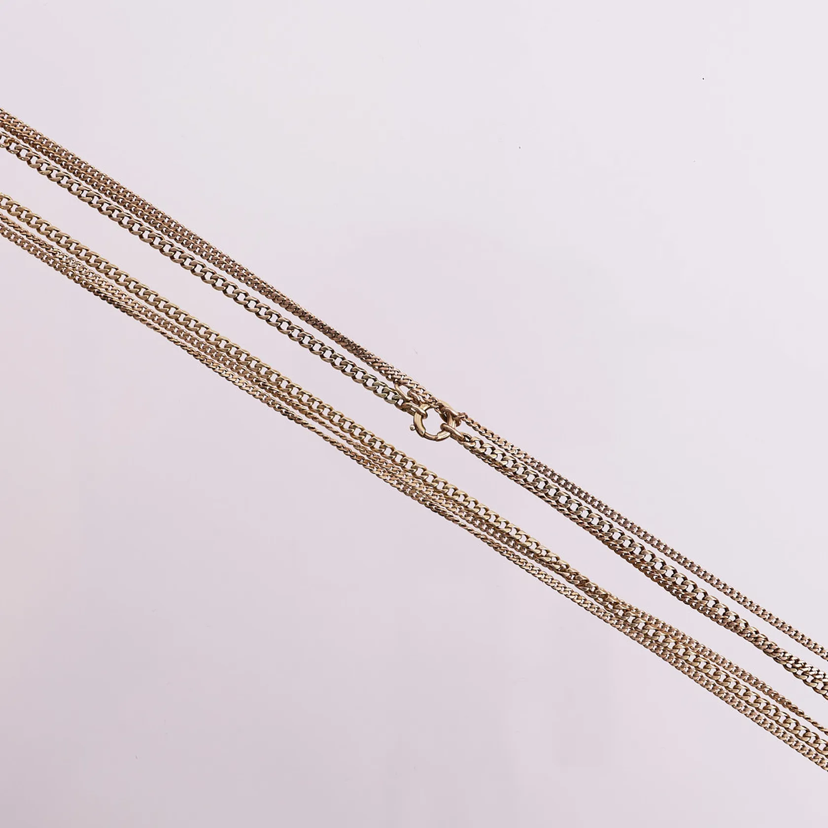 Kjede panser trippel, lengde 158 cm, bredde 1,7 - 2 mm, 14K Vekt: 17 g. Kontakt Lånekontoret for frakt.