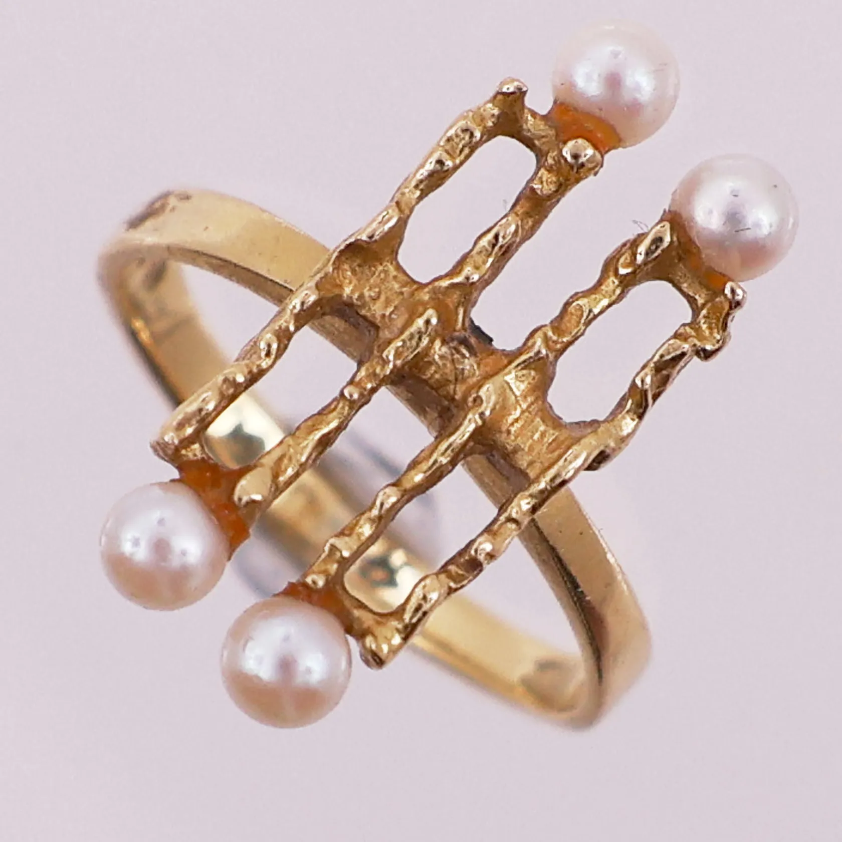 Ring med perler, Ø 16,2 mm, bredde 2,5 - 20,2 mm, 18K Vekt: 3,7 g. Kontakt Lånekontoret for frakt.