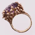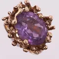 Ring med lilla sten, Ø 16,2 mm, bredde 4,2 - 17,6 mm, 14K Vekt: 10,2 g. Kontakt Lånekontoret for frakt.