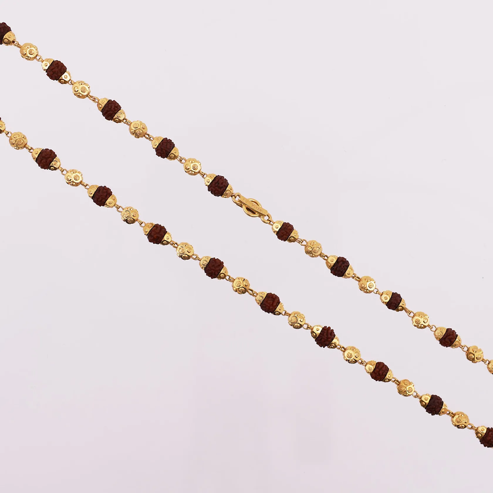 Halskjede med rudraksha, lengde 59 cm, bredde 5 mm, uten lås, 22K Vekt: 19,5 g. Kontakt Lånekontoret for frakt.