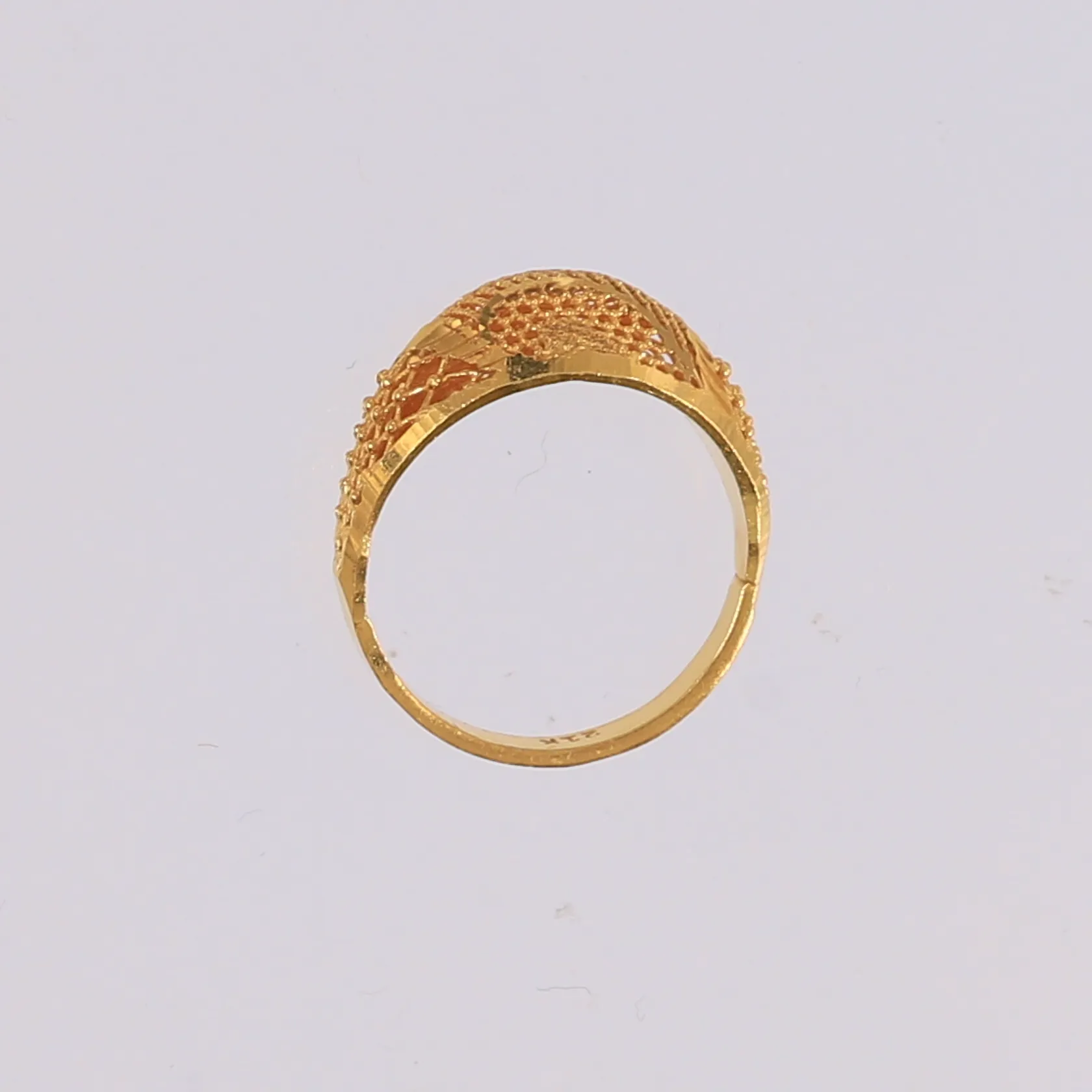 Ring, ø17,3mm, bredde 2,7- 10,8mm, 21K Vekt: 2,9 g. Kontakt Lånekontoret for frakt.