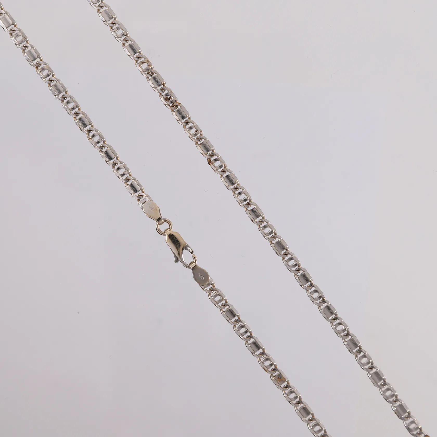 Kjede, lengde 50cm, bredde 3,6mm, hvitt gull, 18K Vekt: 19 g. Kontakt Lånekontoret for frakt.