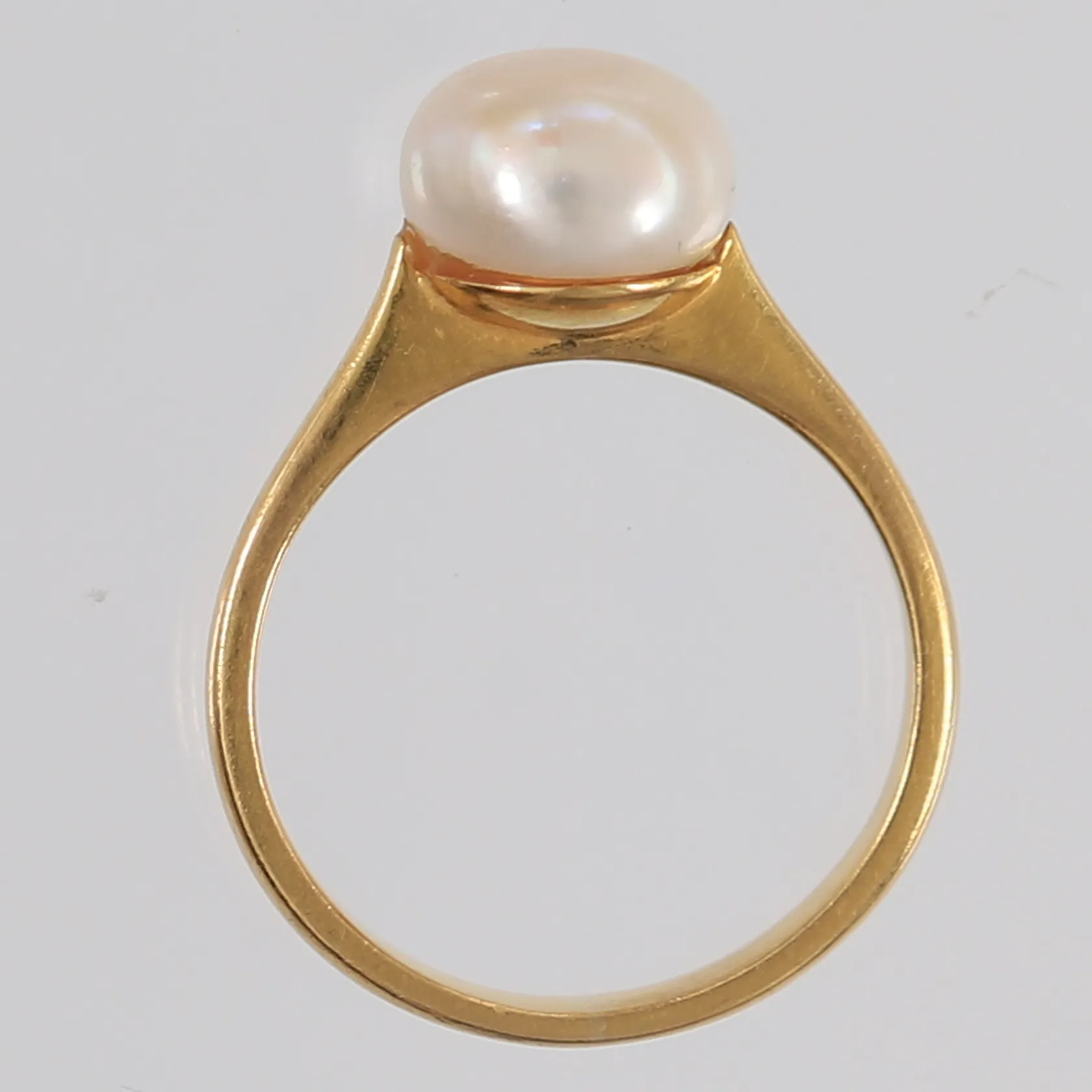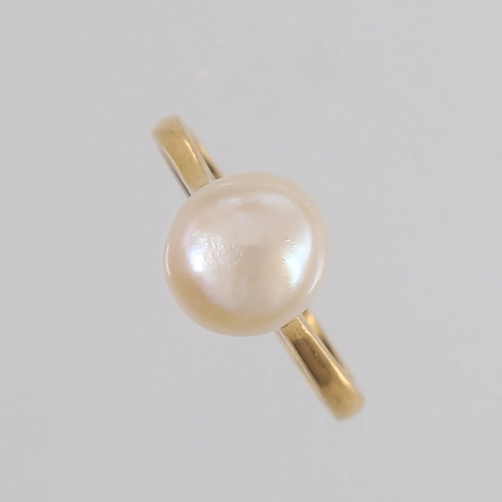 Ring med perle, ø17,3mm, bredde 2,3- 9,5mm, 18K, bruttovekt 3,7g