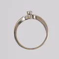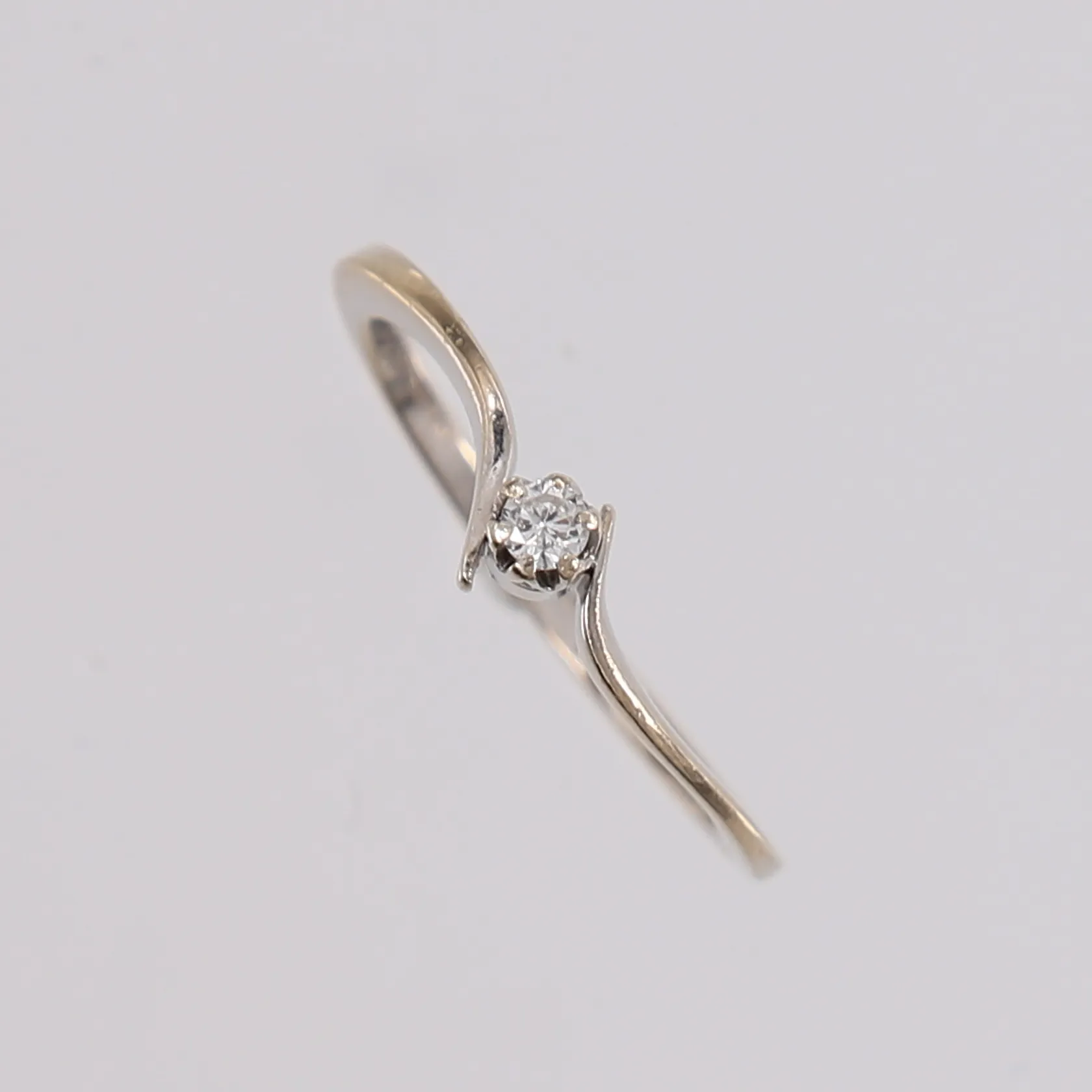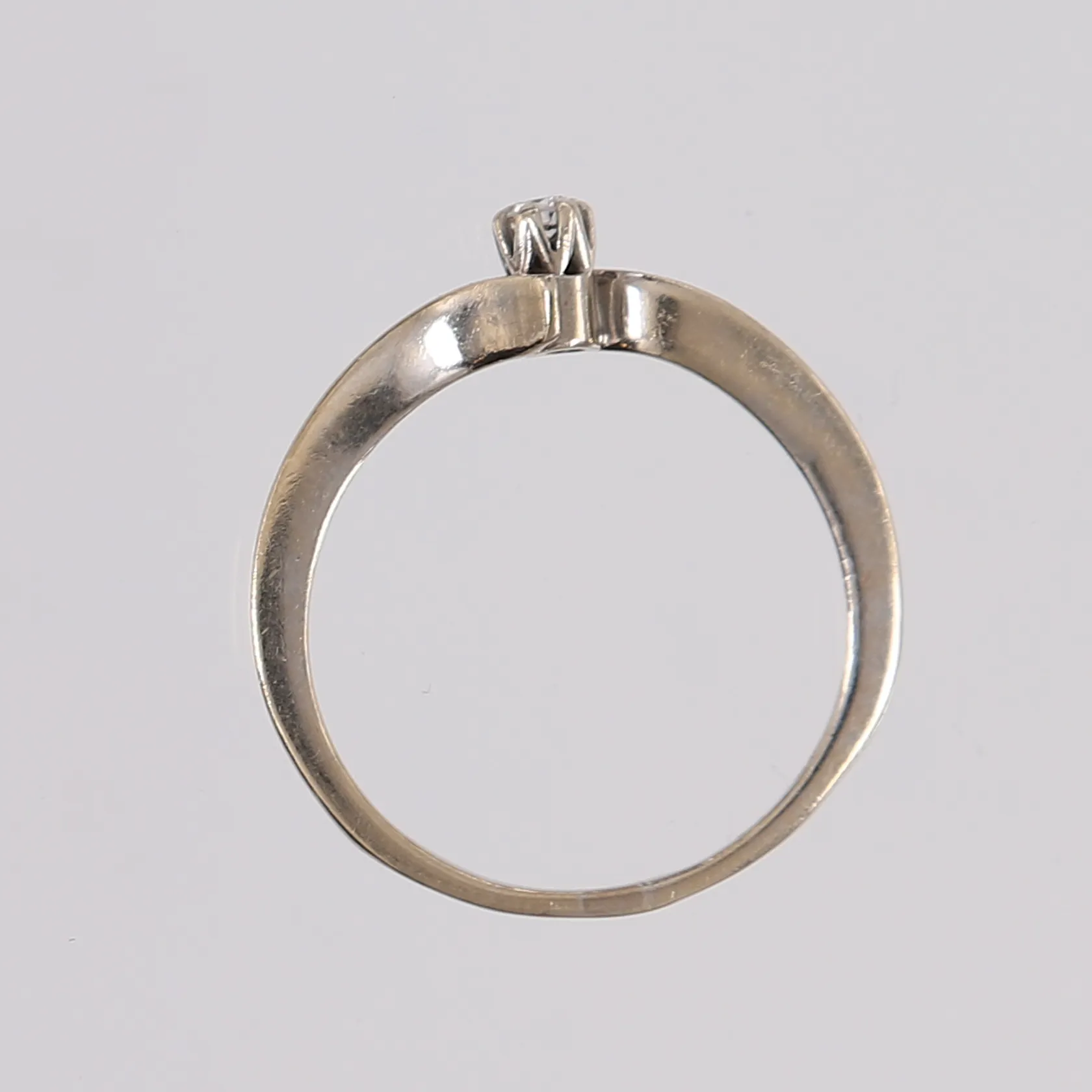 Ring med diamant (1 x ca. 0,08ct), ø17,8mm, bredde 1,4- 4,9mm, hvitt gull, 14K Vekt: 1,8 g. Kontakt Lånekontoret for frakt.