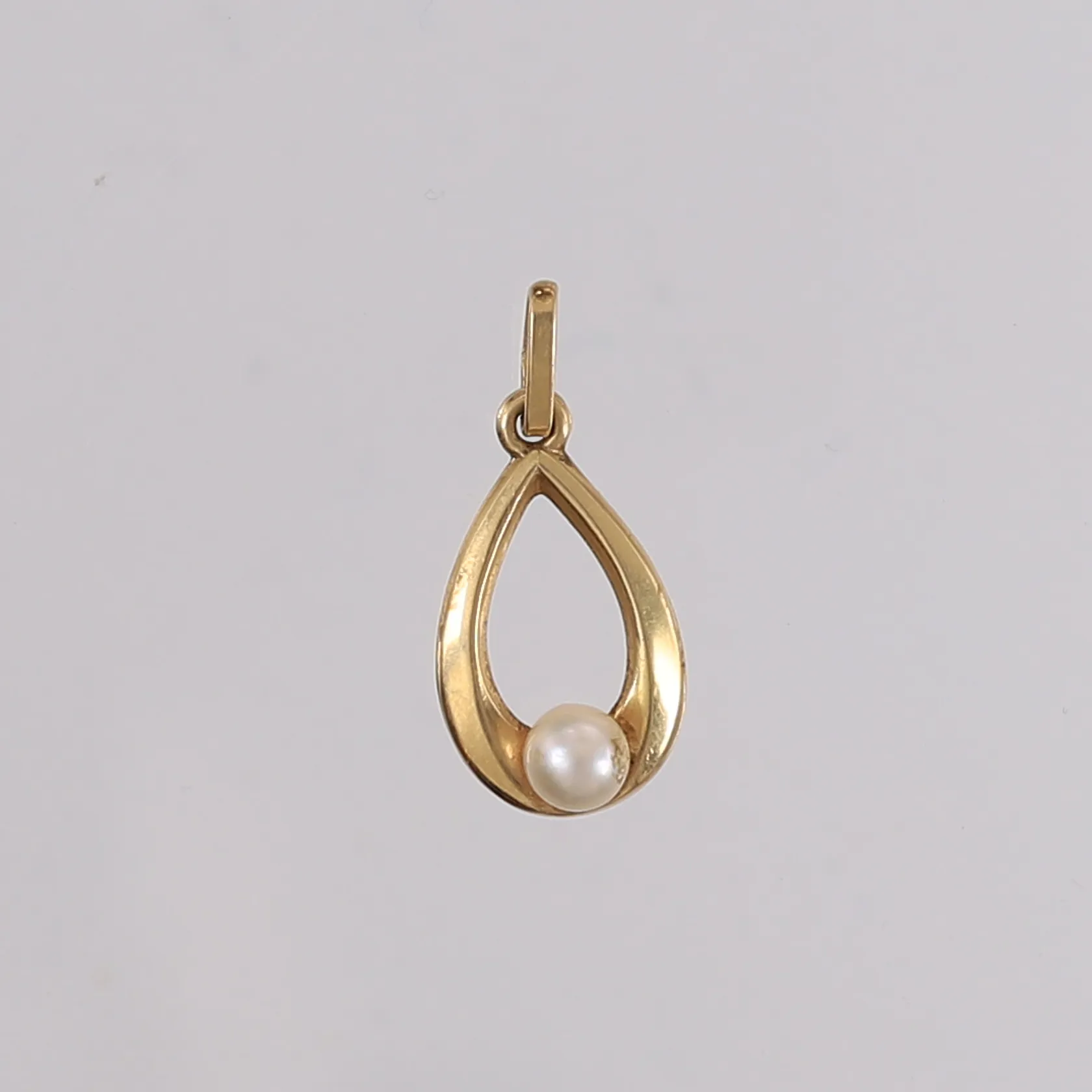 Anheng med perle, 23x11mm, 14K, bruttovekt 0,7g Kontakt Lånekontoret for frakt.