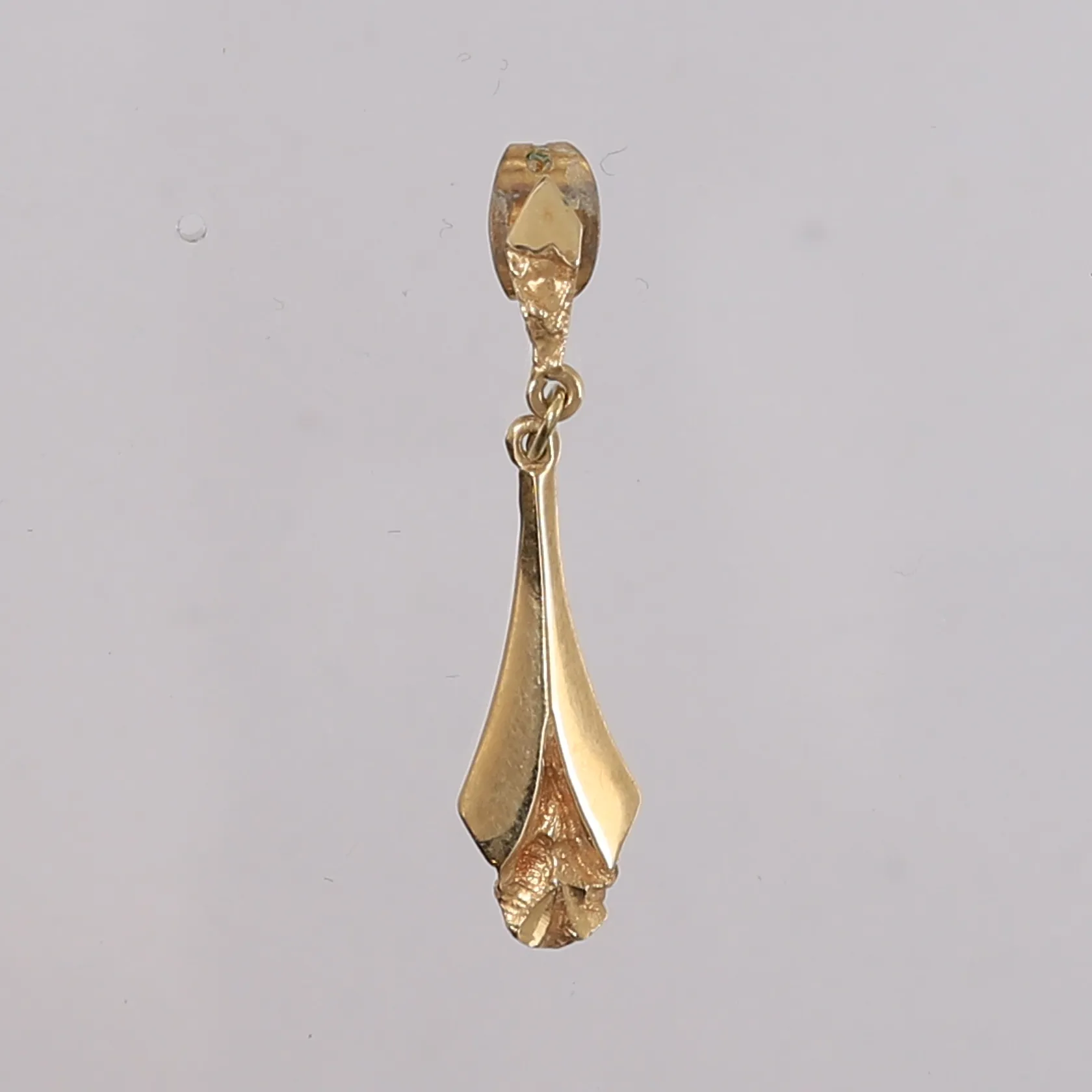 Én stk. øredobb, 35x8mm, OBS! stopper er ikke gull (ikke medtatt i vekt), 14K Vekt: 1 g. Kontakt Lånekontoret for frakt.