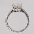 Ring med diamant 1x 1,70 iht. gravering, kvalitet cloudy, ø16,3mm, bredde 1,2- 9mm, hvitt gull, 9K. Vekt: 2,3 g. Kontakt Lånekontoret for frakt.