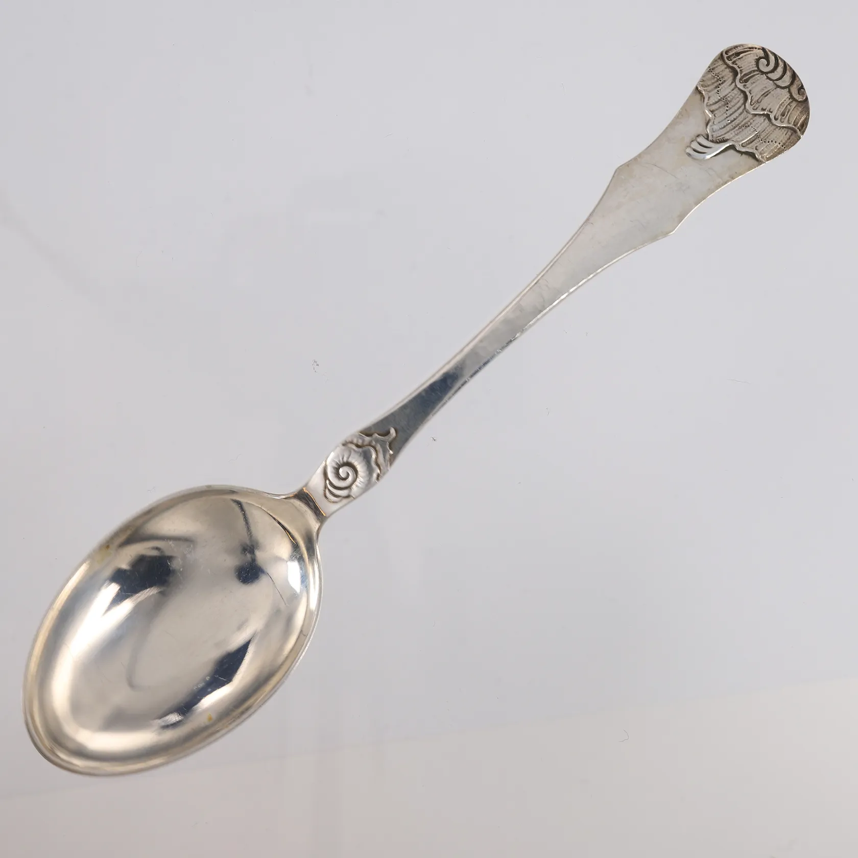 2 store spiseskjeer, Norrøna, lengde 20,9cm, begge er graverte og stemplet "C.D. 4508", 830S Vekt: 99,3 g. Kontakt Lånekontoret for frakt.