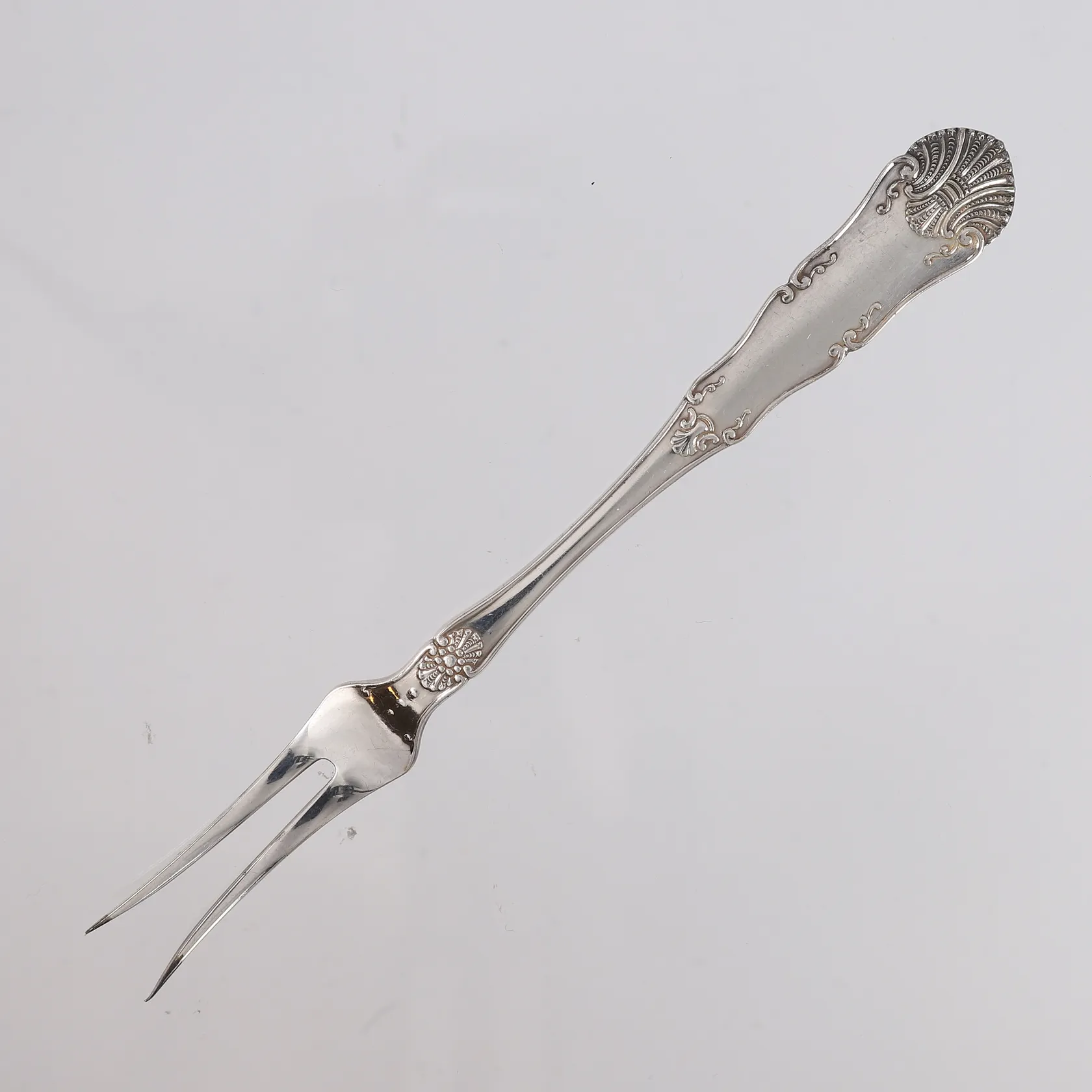 Koldtgaffel, Iris, lengde 15,7cm, 830S Vekt: 20,7 g. Kontakt Lånekontoret for frakt.